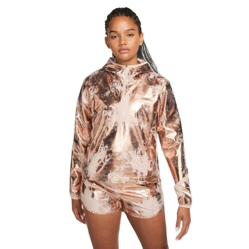 An allover foil print brings a shine to a wet-weather favorite. The Nike Air Jacket was designed with the social athlete in mind, primed for those celebratory selfies after your miles are complete. It’s got an easy-access pocket and a 1/2-zip design so you control the airflow. Zip up and hit the road.