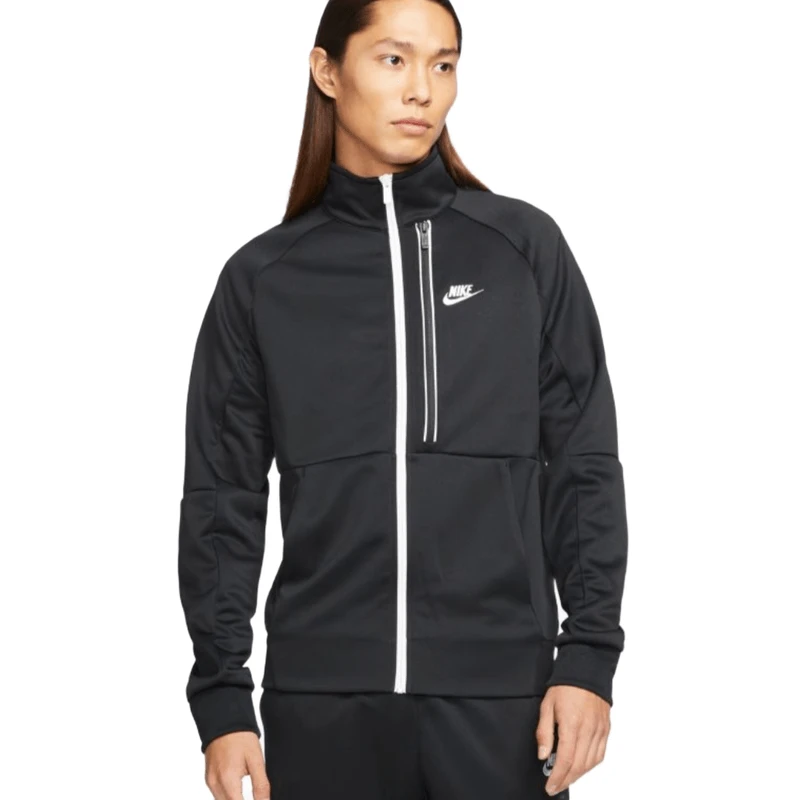 The Nike Sportswear Jacket hits repeat on the N98 Jacket, an iconic soccer warm-up silhouette. Sport-inspired paneling adds versatility to this heritage design to help keep you moving comfortably throughout your day. Its knit fabric contains at least 75% recycled polyester fibers. This product is made with at least 75% recycled polyester fibers.