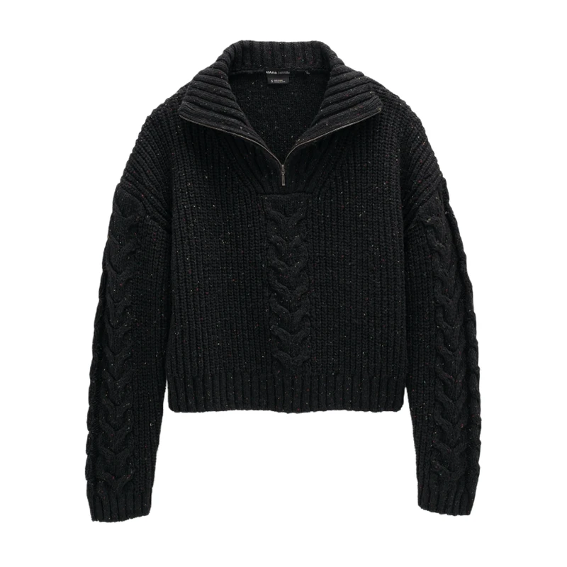- Cable knit styling on front, sleeves, back