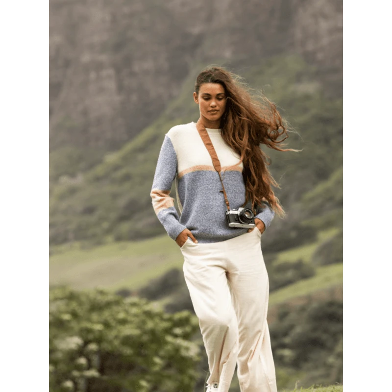 Tap into your natural rhythm with the Real Groove cozy women’s long sleeve crew neck sweater. Made of a soft medium-weight yarn, it features a stylish yarn-dyed stripe design and a relaxed cut with dropped shoulder and ribbed cuffs.