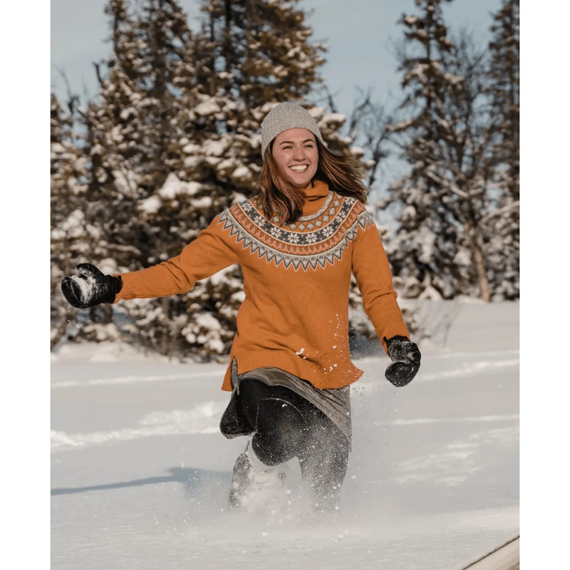 Inspired by traditional Nordic patterns, the high collar on Scandinavian Roll Neck keeps you cozy and warm on those chilly winter days. Slightly longer in the back with slits on the side, this “tunic” like sweater pairs perfectly with your favorite leggings or jeans.