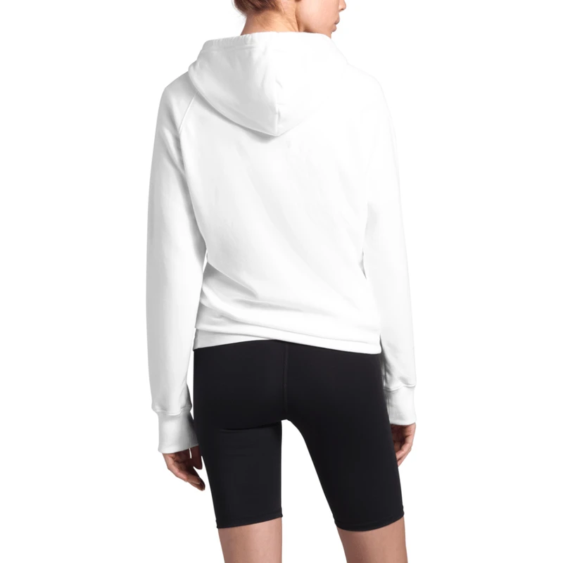 Featuring a two-piece drawcord hood and ribbed cuffs to keep out the cold, this women’s mid-weight cotton-poly blend hoodie will keep you warm throughout the cold-weather season. Finished with a front kangaroo-style pocket, and large, North Face logo, it is perfect for both indoor and outdoor wear.