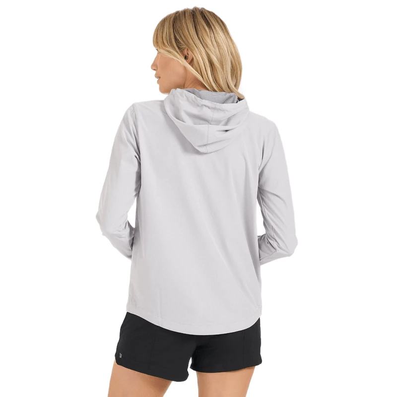 Take on the great outdoors in Vuori’s women’s hooded Outdoor Trainer Shell jacket. The lightweight performance material is moisture wicking with multiple zip pockets and a reflective logo so you’re covered on all your outside adventures.